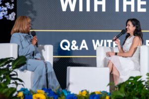 Event Emcee Marla Tellez (right) speaks with Carson Mayor Lula Davis-Holmes during the “A Conversation with the Mayor” segment at the 2026 Carson State of the City address at the Carson Event Center on March 19. / Photo Credit: Clivabeth Photography